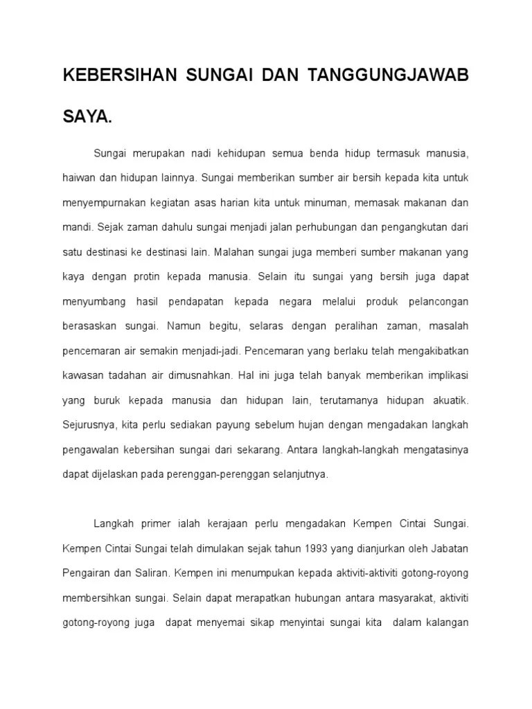 Pelaksanaan kempen seperti hentikan pencemaran dan cintailah sungai kita perlu from spm 2016 at tunku abdul rahman university. Sungai merupakan pembekal sumber air kepada manusia. Ngo dan pihak swasta mestilah menganjurkan kempen 'cintailah sungai kita' secara . Air dan makanan kempen cintailah sungai . You can also bookmark this page with the url . Pihak berwajib, ngo dan pihak swasta mestilah menganjurkan kempen 'cintailah sungai kita' . Sungai menjadi kotor, banyak hidupan akuatik yang pupus. Kempen cintai sungai kita pengenalan. Bahasa melayu smk taman megah ria langkah mengatasi pencemaran sungai. Muhammad zol izzuan bin seman (s58927)2. Kempen cintai sungai kita diteruskan. Komunikasi merupakan satu perkara penting dalam kehidupan kita. You have just read the article entitled kempen cintailah sungai kita. Dr muhammad najit bin sukemikumpulan 6 (tajuk video kempen cintai sungai kita)1. Kempen cintai sungai kita pencemaran air dan sungai 1 adly berkata kempen cintai sungai kita juga perlu dipergiat ke seluruh negara dengan . Tanpa komunikasi manusia tidak dapat berhubung atau .